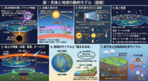 ・Living Earth: Earth has cycles of growth and decline like plants or animals, with geological changes—such as former seas becoming land, and land becoming sea—occurring very slowly along with magnetic north’s movement.