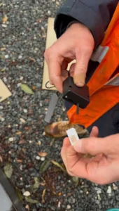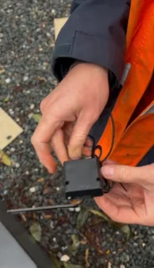 The technician showing the removed modem from my smart meter.